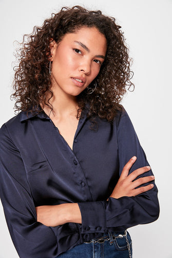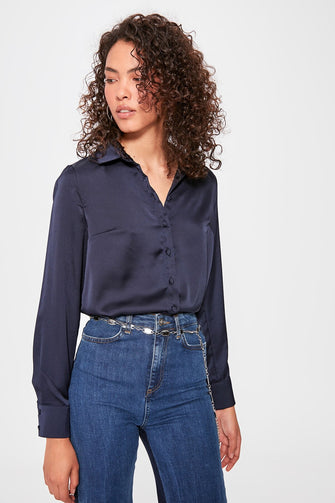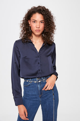 Trendyol Navy Blue Classic Shirt TOFSS19FG0008