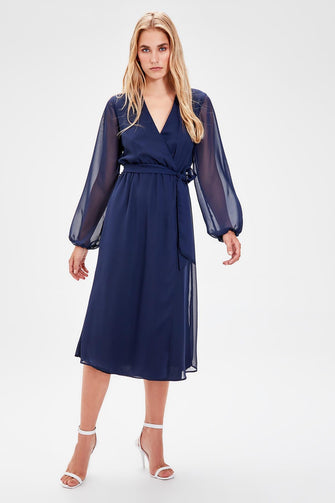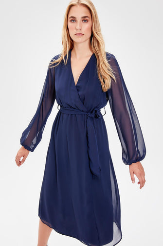 Navy Blue Double Breasted Belted Dress