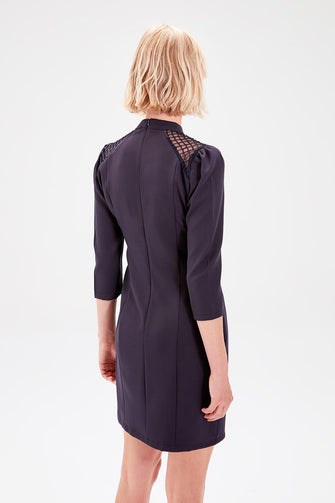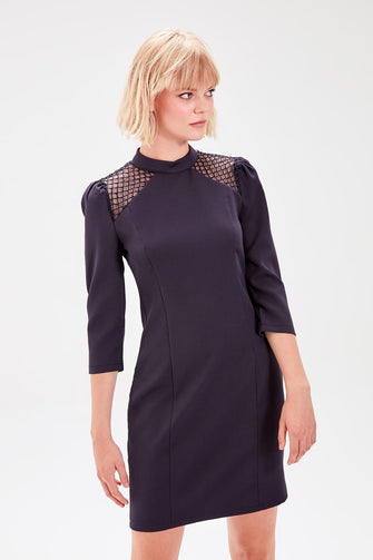 Navy Blue Fishnet Detail Dress