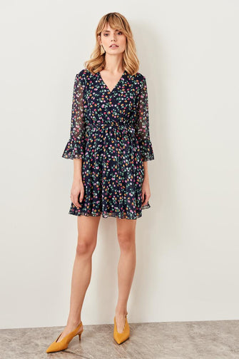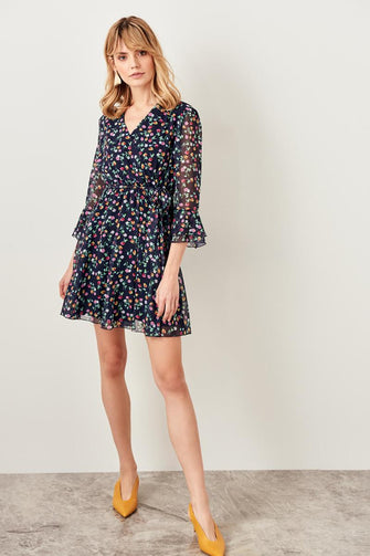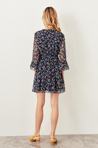 Navy Blue Floral Print Dress