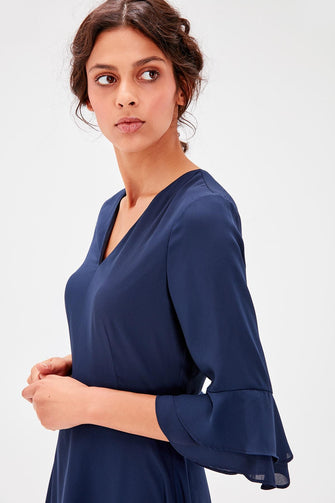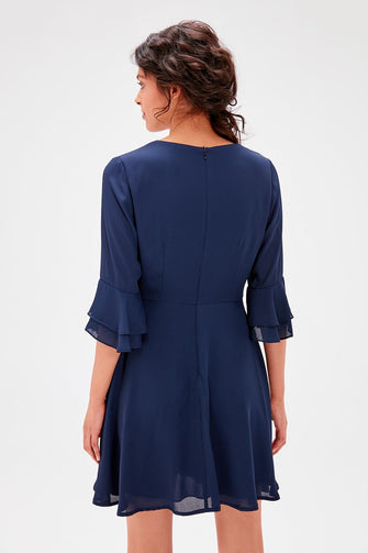 Navy Blue Flounces Dress