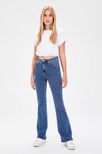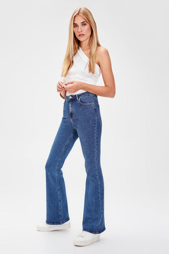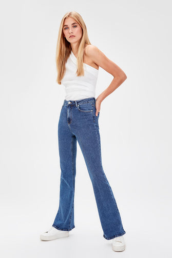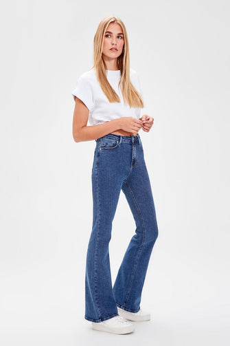 Navy Blue High Waist Flare Jeans