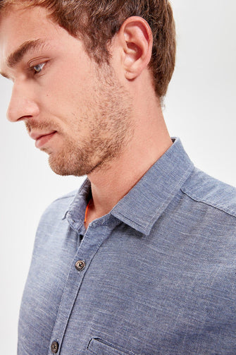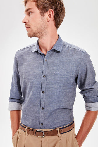Navy Blue Male Pockets Slim Fit Shirt New