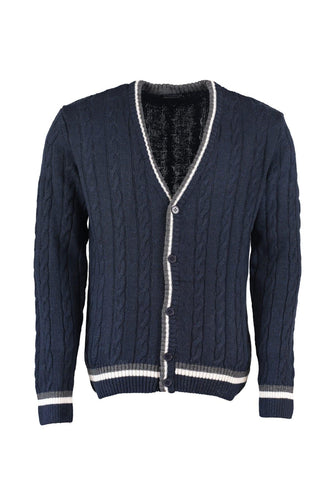 Navy Blue Male Hair Weave Sweater Cardigan