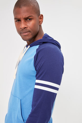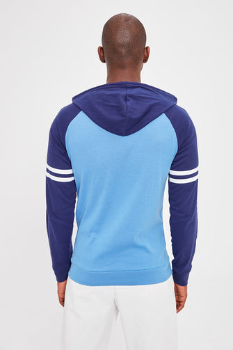 Navy Blue Male Hooded Kangaroo Pocket Long-Sleeve Raglan Sleeve New T-Shirt