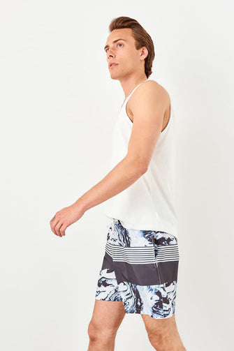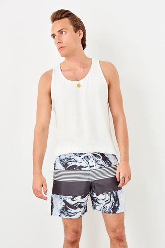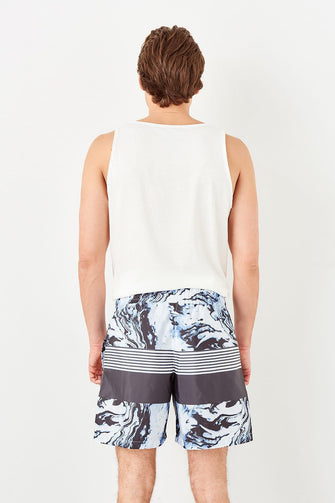 Navy Blue Male Marble Pattern Sea Shorts