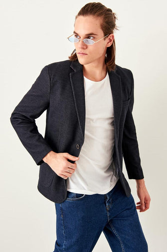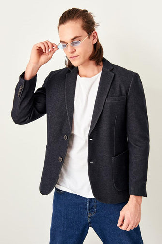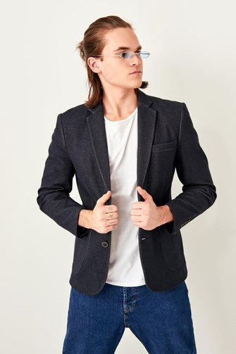 Navy Blue Male Refitting Pocket Slim Fit Jacket