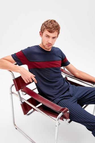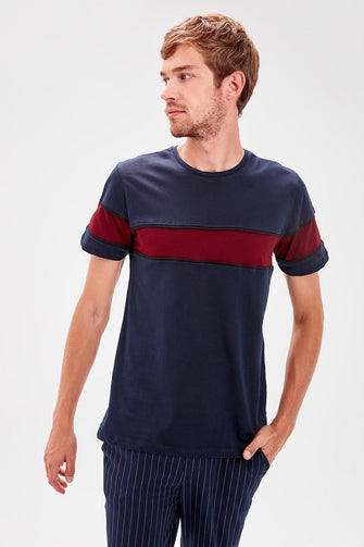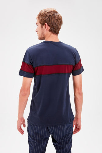 Navy Blue Men Cycling Neck Short Sleeve Piping New T-shirt