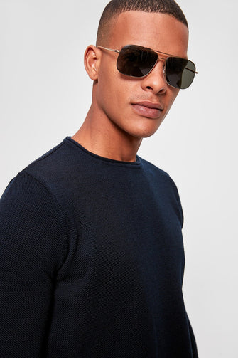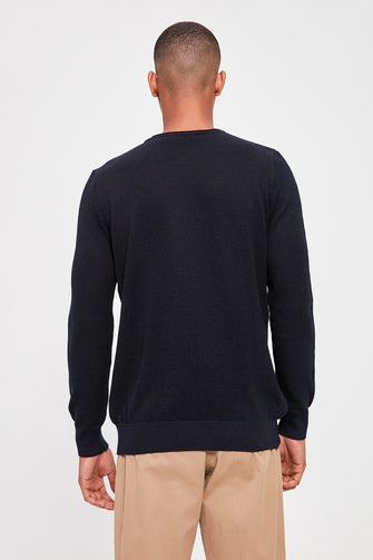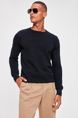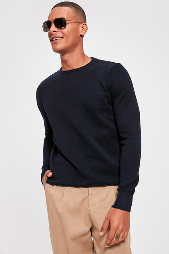 Navy Blue Men Cycling Neck Textured Cotton Knitwear Sweater New
