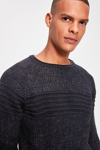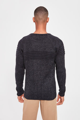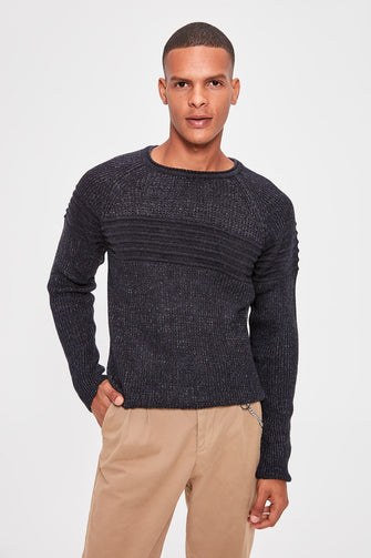 Navy Blue Men Cycling Neck Textured Sweater
