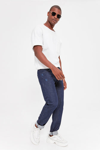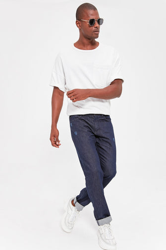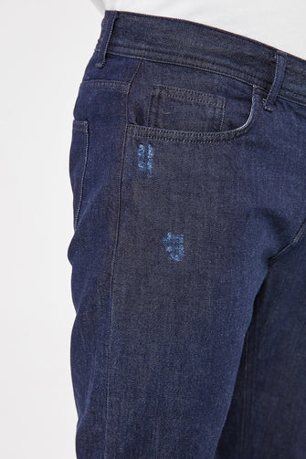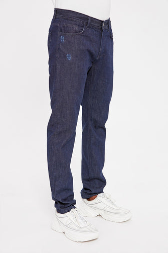 Navy Blue Men Harrow Destroylu Slim Fit Jeans