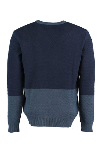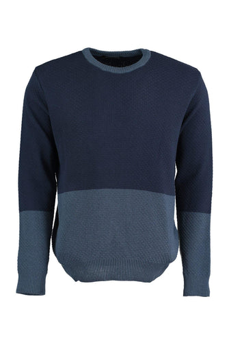 Navy Blue Men Panelled Textured Bike Collar Sweater