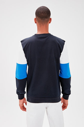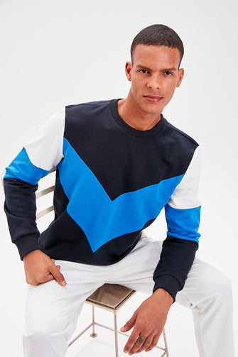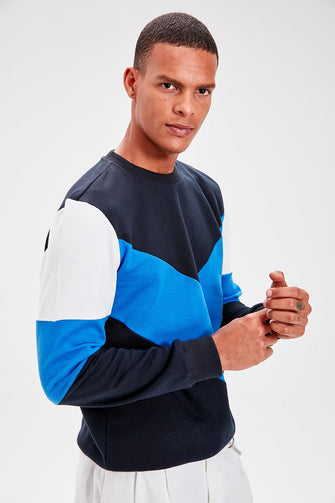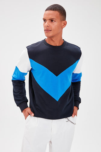 Navy Blue Men 'S Bike Collar Long Sleeve New Sweatshirt