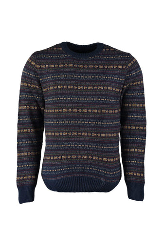 Navy Blue Men 'S Bike Collar Pattern Sweater