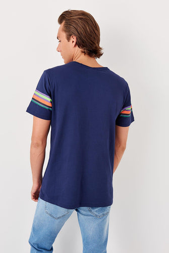 Navy Blue Men 'S Cotton Printed New T-shirt