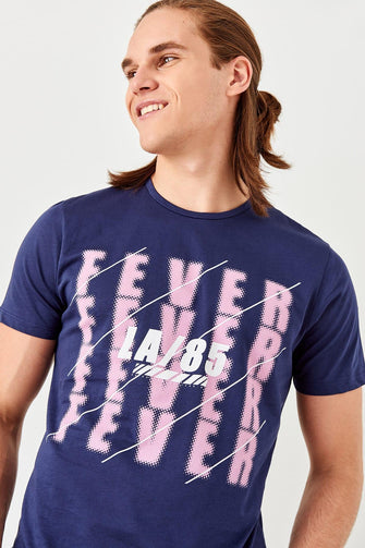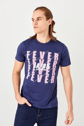 Navy Blue Men 'S Cotton Printed T-Shirt