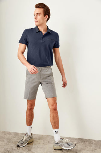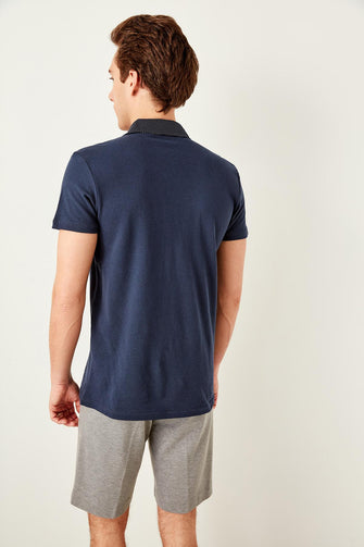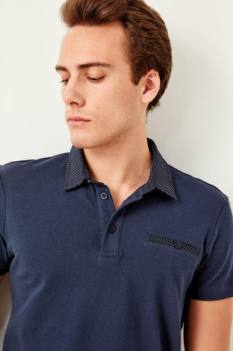 Navy Blue Men 'S Cotton T Shirt Short-Sleeve Pocket Detail Polo Collar T-