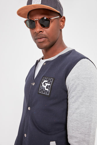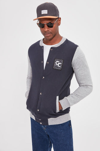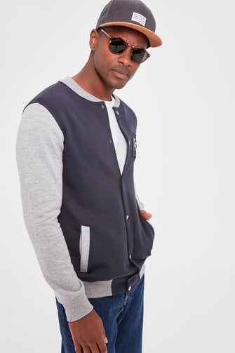 Navy Blue Men 'S Fronting Snaps Long Sleeve With Pockets New Bomber Sweatshirt