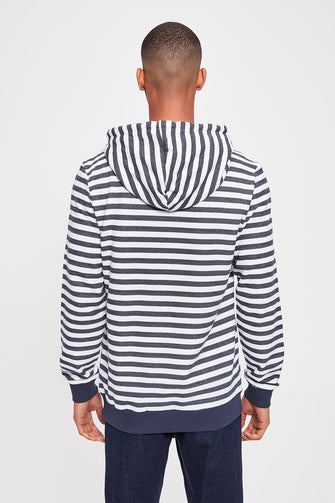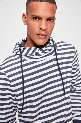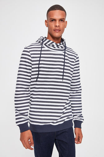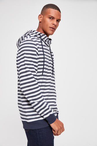 Navy Blue Men 'S Hooded Long Sleeve Striped New Sweatshirt