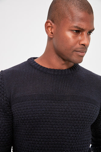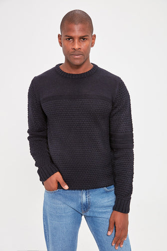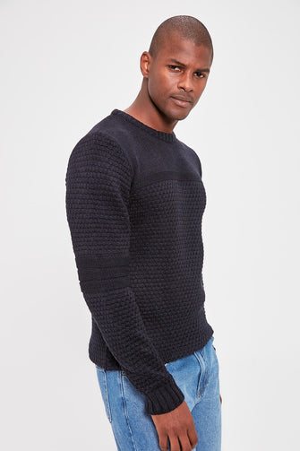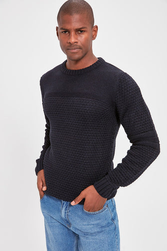 Navy Blue Men 'S Pattern Bike Collar Knitwear Sweater New