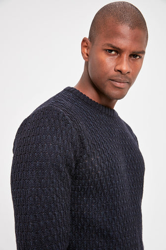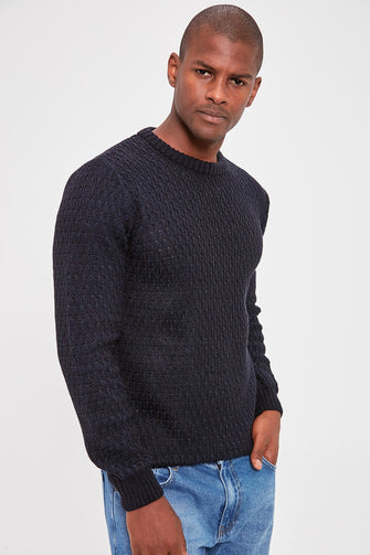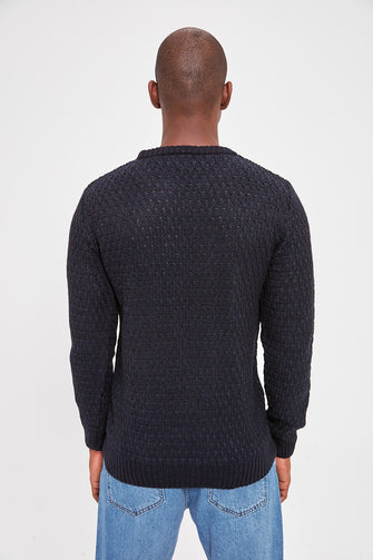 Navy Blue Men 'S Pattern Bike Collar Knitwear Sweater New