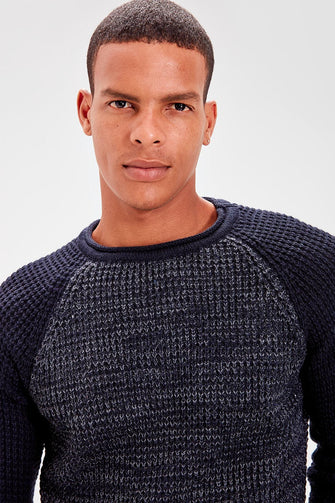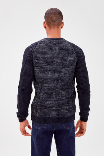Navy Blue Men 'S Pattern Bike Collar Sweater New