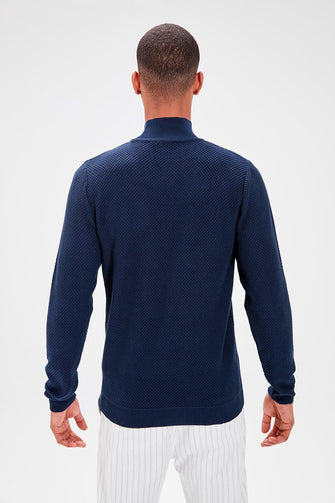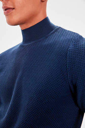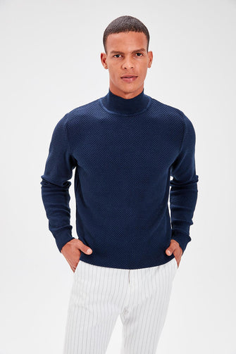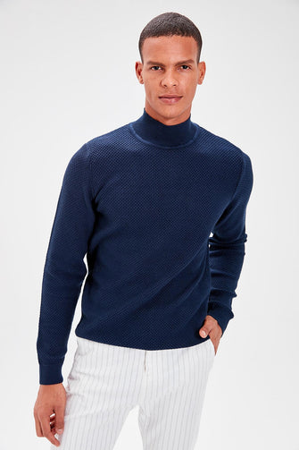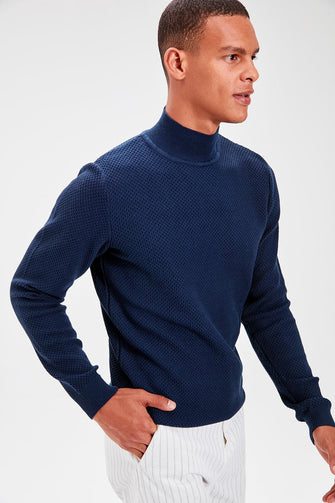 Navy Blue Men 'S Pattern Half Turtleneck Sweater
