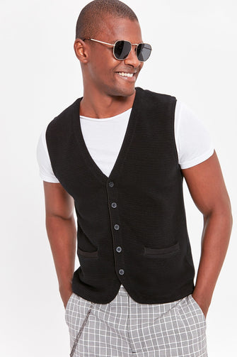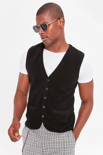 Navy Blue Men 'S Pattern Sweater Vest