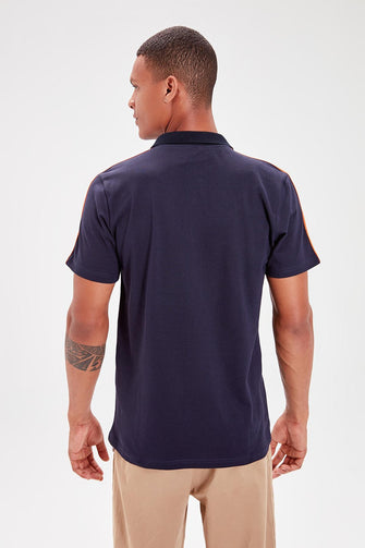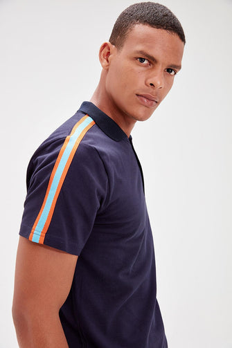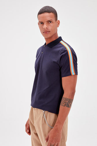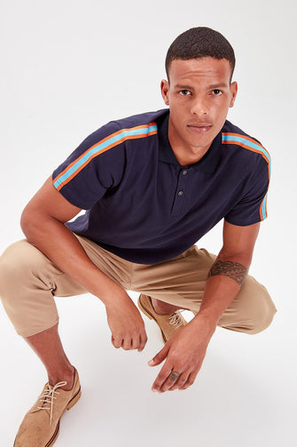 Navy Blue Men 'S Polo Collar Stripe Detail T-Shirt New