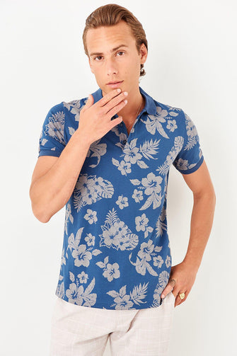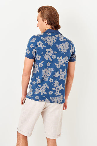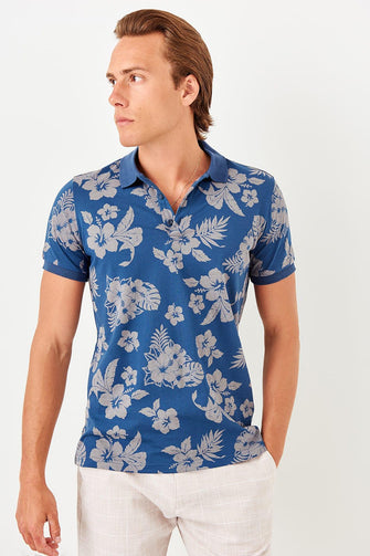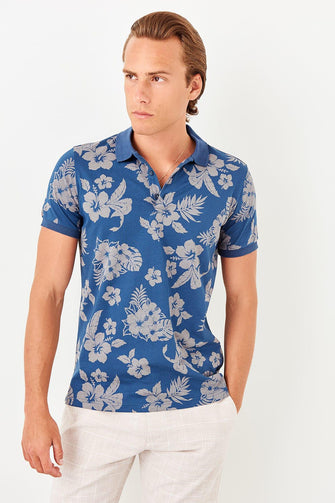 Navy Blue Men 'S Printed New Polo Collar T-Shirt