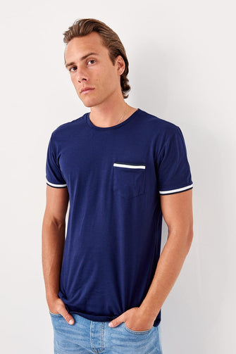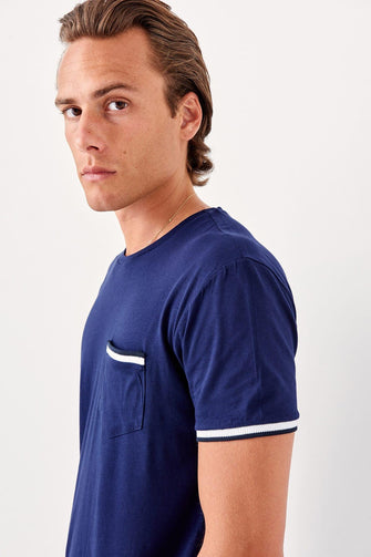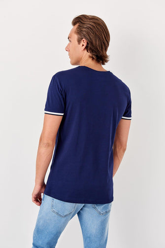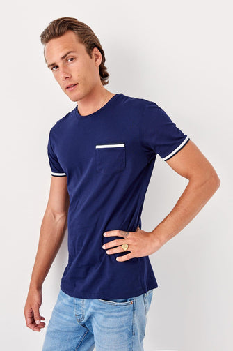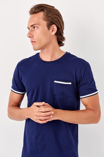 Navy Blue Men 'S Short Sleeve Cycling Collar Pockets New T-shirt