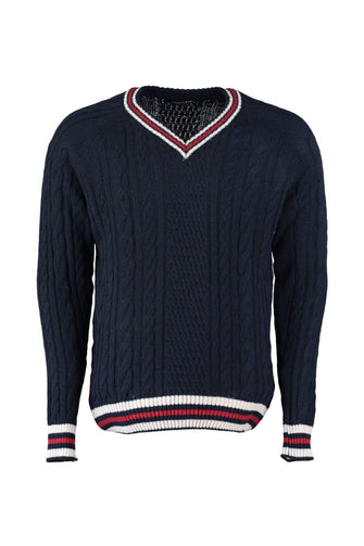 Navy Blue Men 'S V-Neck Hair Braided Knitwear Sweater