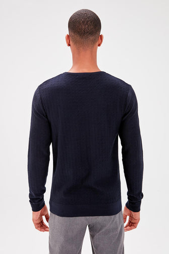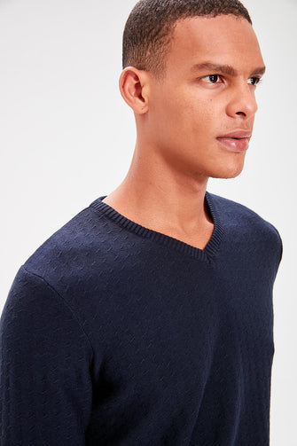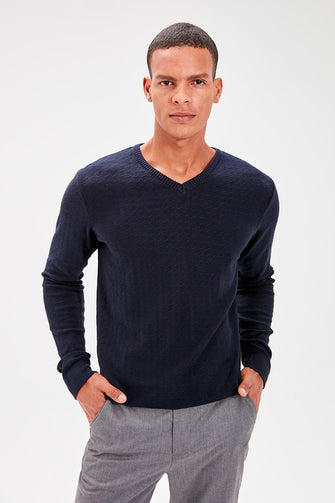 Navy Blue Men 'S V-Neck Textured Sweater Sweater
