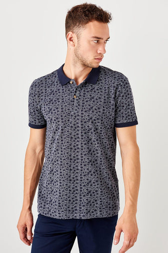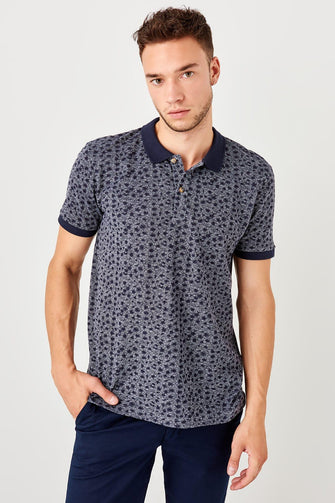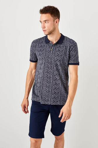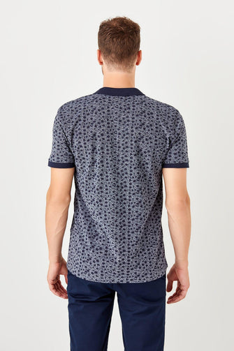 Navy Blue New Men Printed New Polo Collar T-Shirt
