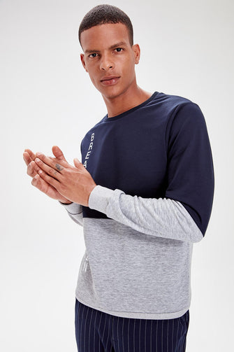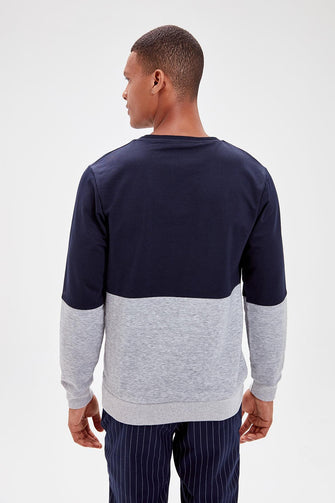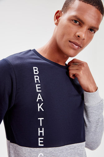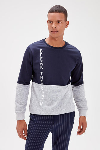Navy Blue New Men 'S Printed Bike Collar Sweatshirt