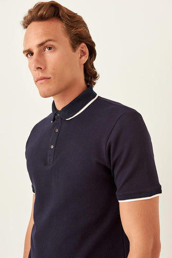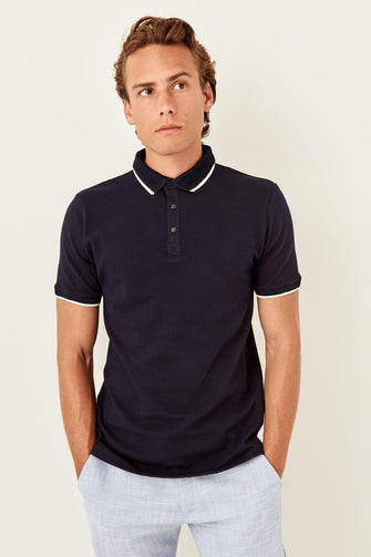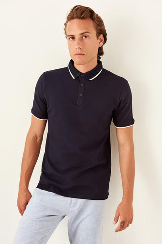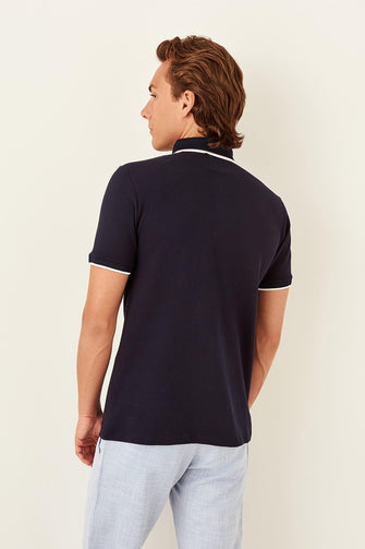 Navy Blue New Men 'S Short Sleeve New Polo Collar T-Shirt