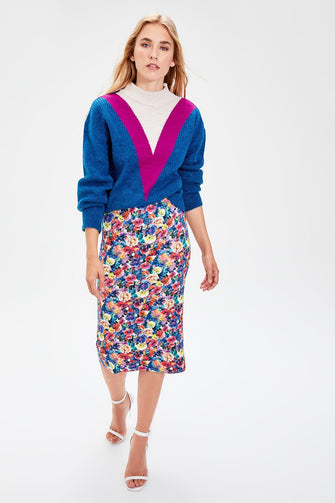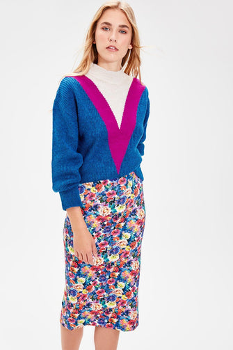 Trendyol Navy Blue Pattern Knitwear Sweater TWOAW20ZA0058