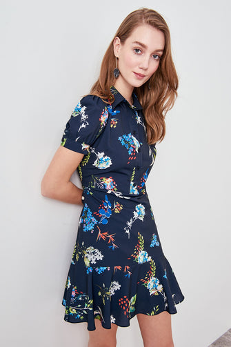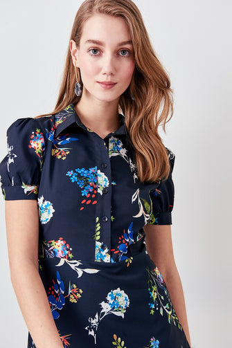 Navy Blue Patterned Dress