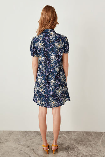 Navy blue patterned dress with zipper