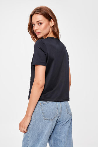 Trendyol Navy Blue Ribbon Detail Knitted Blouse TWOAW20BZ0333