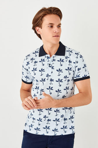 New Blue Men 'S Printed Polo Collar T-Shirt TMNSS19PO0056
