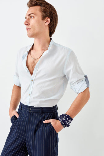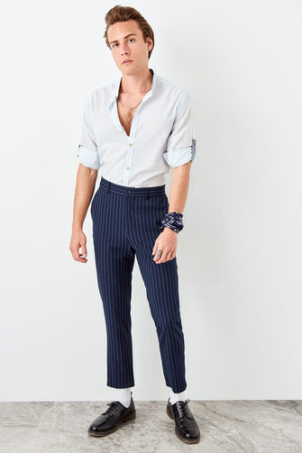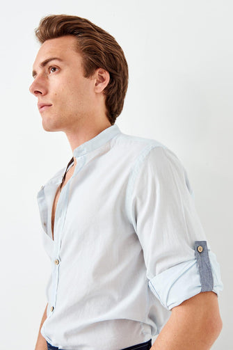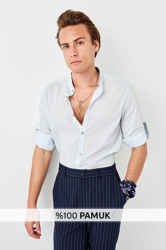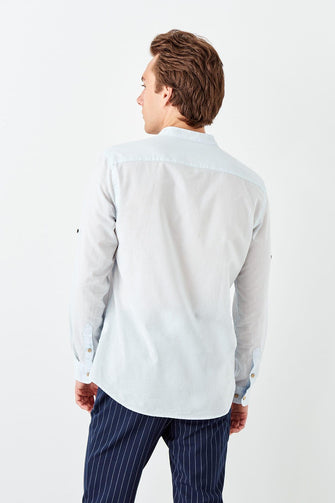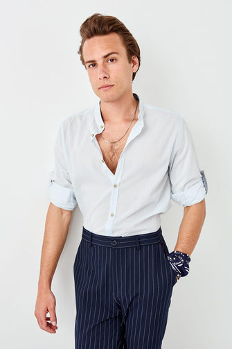 New Blue Men 'S Slim Fit Crew Neck Shirt with Epaulets