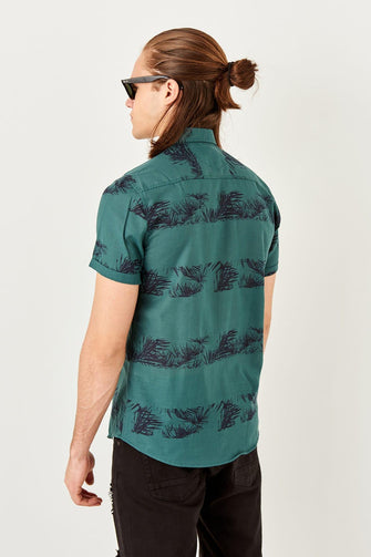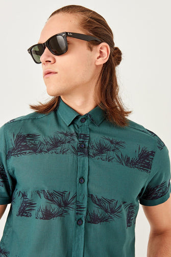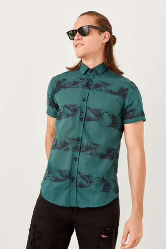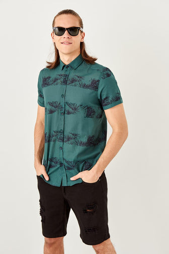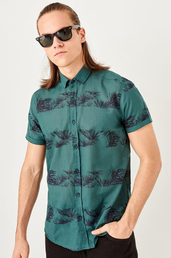 New Green Men 'S Printed Short Sleeve Slim Fit Shirt