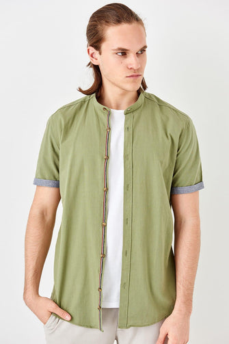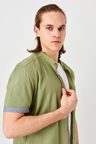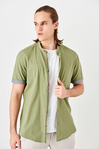 New Khaki Men 'S Crew Neck Short Sleeve Slim Fit Basic Shirt