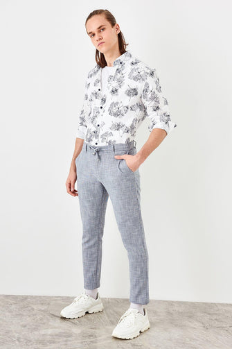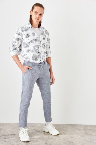 New Navy Blue Men 'S Linen Looking Pants