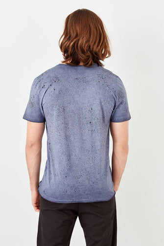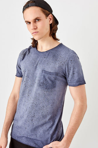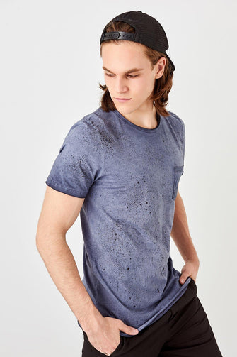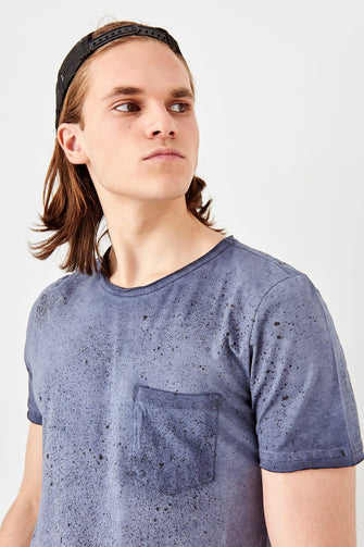 New Navy Blue Men 'S Oil-Flushing T-Shirts With Pocket