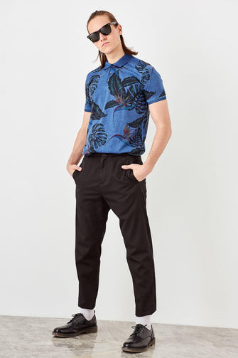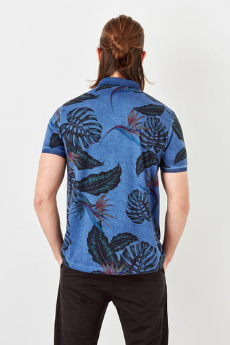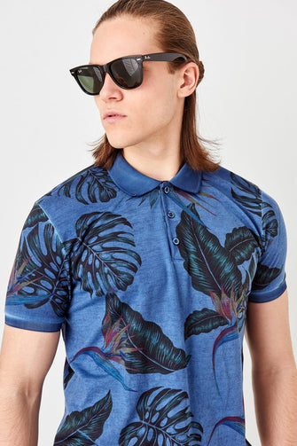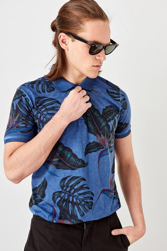 New Navy Blue Mens Printed Polo Collar T-Shirt
