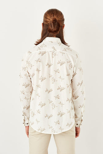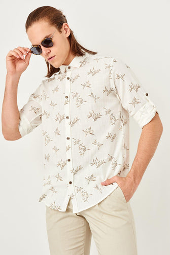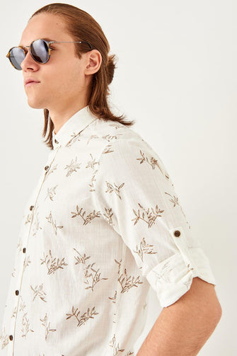 New Offwhite Mens Printed Epaulets Slim Fit Shirt