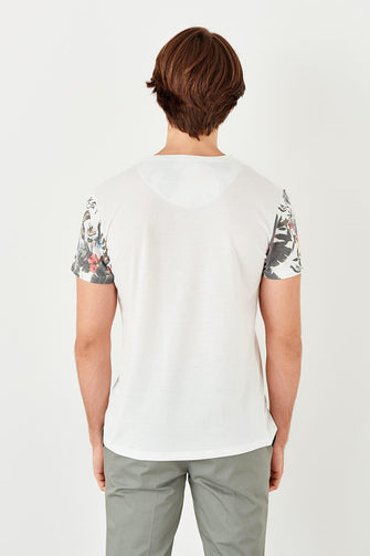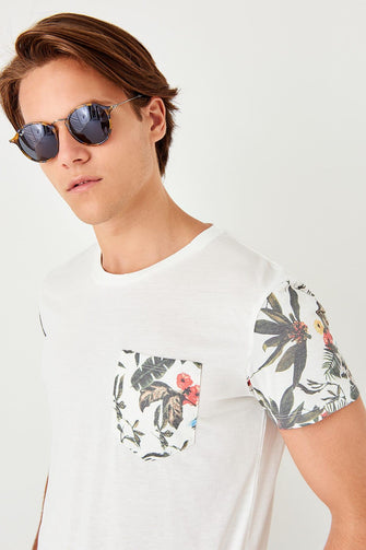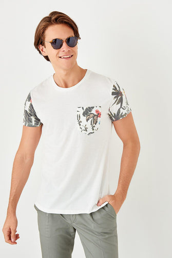 New White Men 'S Pockets Printed Bicycle Neck T Shirt