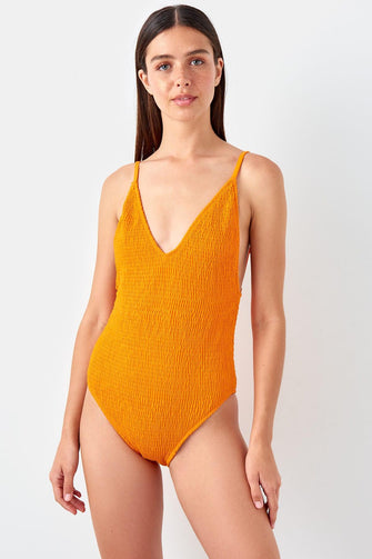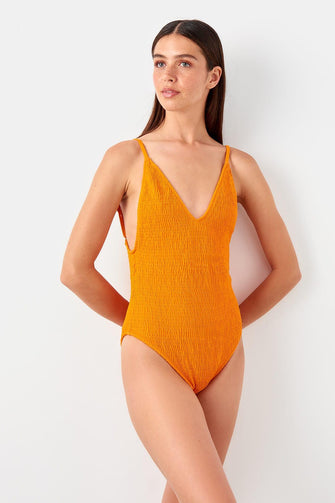 Orange Crepe Fabric Swimwear